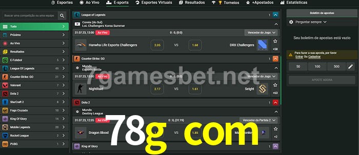 O 78g com oferece uma grande seleção de opções de apostas em e-sports com probabilidades competitivas